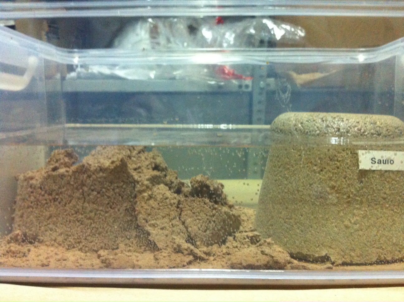 Después de dejar la muestra tratada con los copolimeros de Humicorp durante 6 días, se procede a juntarla en la misma probeta con otra muestra de terreno natural tratada con cemento y cal en este caso.
