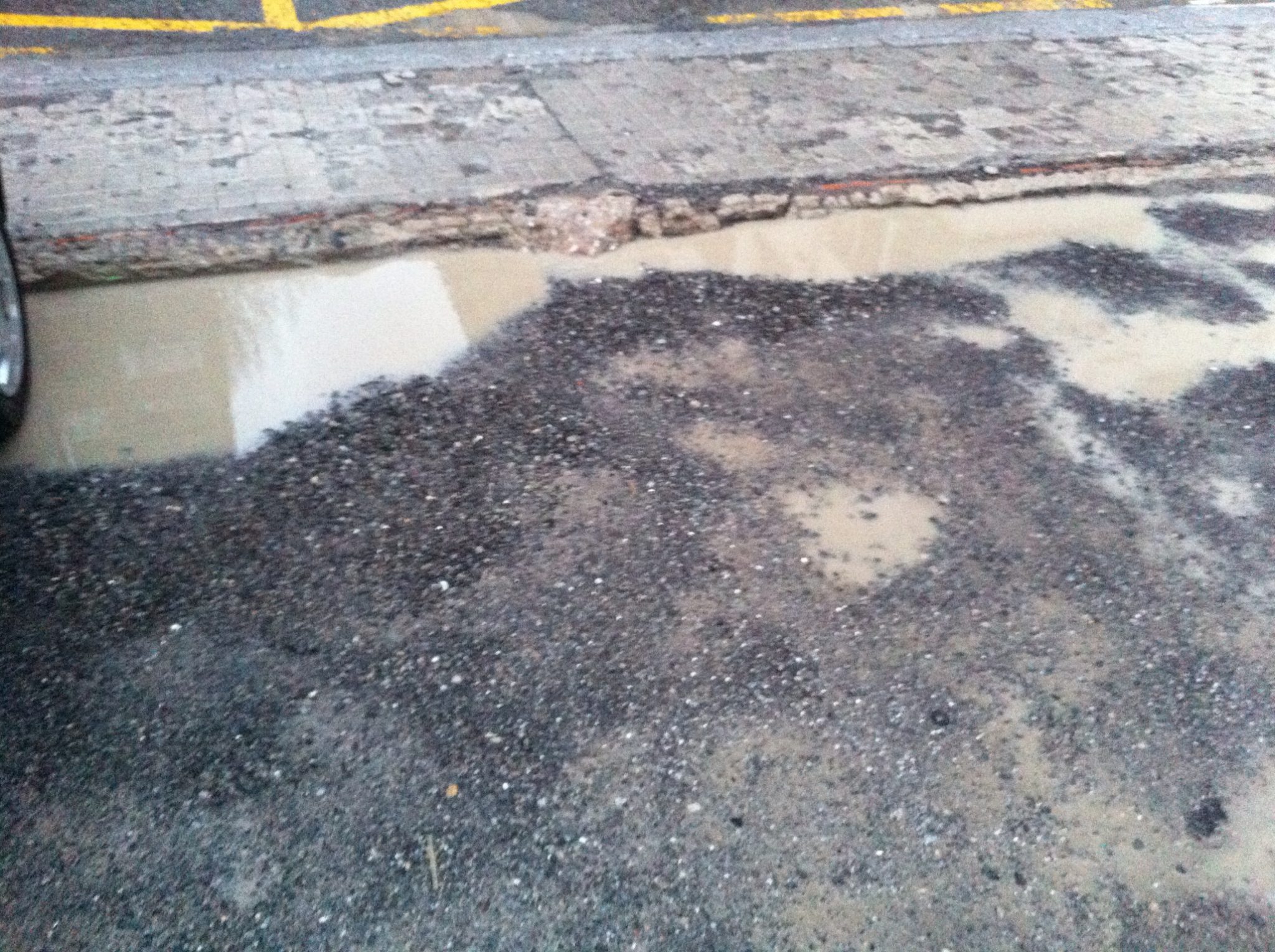 El lamentable estado del aparcamiento, no se corresponde a su corto periodo de uso. La imagen se tomo a las 2 semanas de la inauguración. Con los copolimeros de Humicorp, se ahorra dinero ya en la primera vez, y cada año se mejora la rentabilidad de la inversión