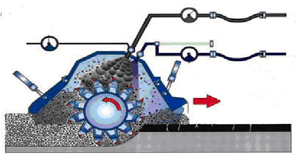 Van ensambladas sobre cadenas o sobre grandes ruedas neumáticas que permite una mayor flexibilidad de maniobra.El elemento central está constituido por un tambor de fresadora, con la herramienta apropiada de corte, posicionada según una geometría precisa.El tambor está cerrado en un carter de protección y forma la así llamada “camera de fresa”. La principal diferencia que hay, en términos de aplicación, entre la cal, el cemento y los copolimeros, es que los copolimeros se presentan de forma líquida. La forma líquida es una ventaja, porque nos permite inyectar directamente los copolimeros en la camera de fresa, estabilizando de forma mucho más homogénea respecto a las clásicas estabilizaciones de cal y cemento.La aplicación se acerca mucho a la técnica de reciclado en frio o de asfalto espumado. Al avanzar la máquina estabilizadora, los dientes del tambor fracturan la pavimentación, agregándola generalmente de abajo a arriba; Mientras, en el interior de la camera de fresa va inyectado el copolimero diluido en agua según la dosificación proyectada para obtener la humedad óptima de compactación.